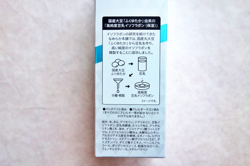 パッケージは、白地に「豆乳イソフラボン」と印字された、 なめらか本舗でおなじみのデザインです。ドラッグストアで見たことがある方も多いと思います。