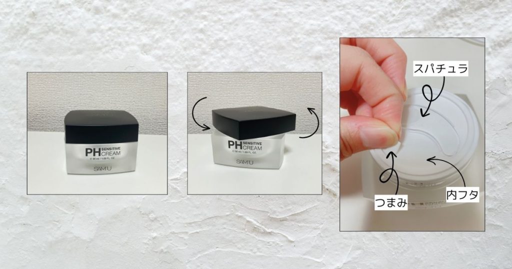 内フタはつまみをひっぱると開きますが、勢いよく開けるとクリームが飛び散るので、注意してください!