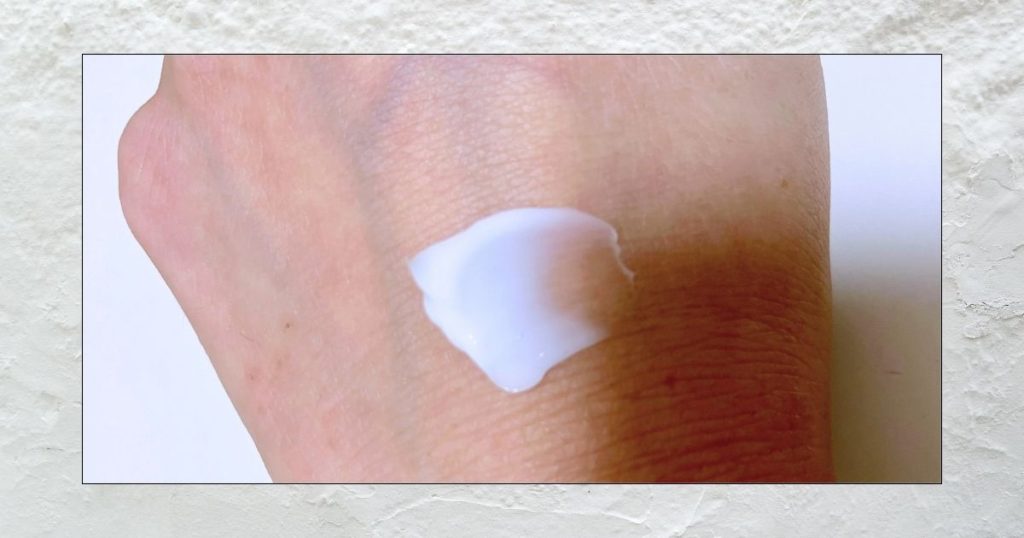 写真だと見づらいですが、テクスチャーは伸びがよい白色のクリームで、モチモチしています。